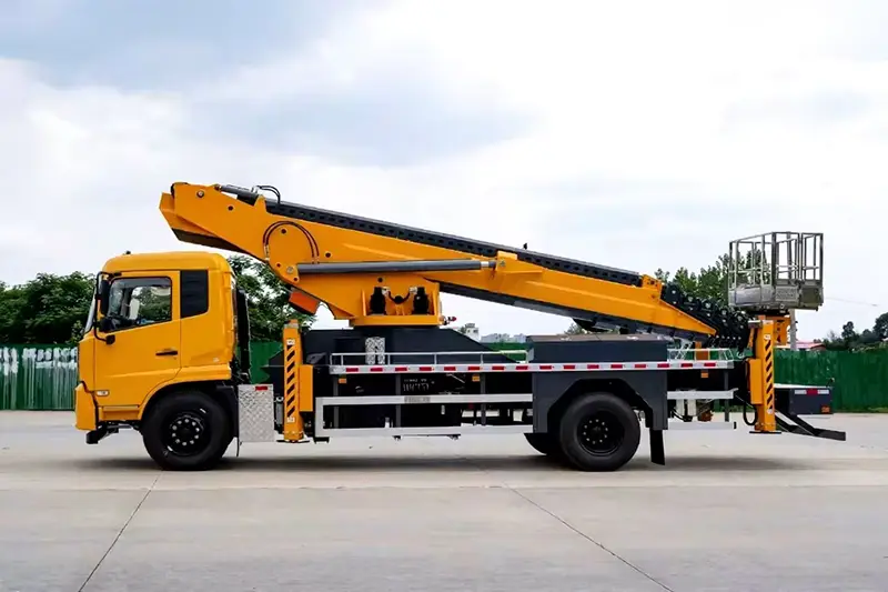 Ce camion à plate-forme de travail élévateur aérien Dongfeng de 45 m est équipé d'une **flèche télescopique à 8 sections et 18 côtés**, adoptant une technologie télescopique synchrone à 7 sections, réalisant une hauteur de fonctionnement maximale de 45 mètres et un large rayon de fonctionnement horizontal, couvrant une large zone d'espace d'opération à haute altitude sans angles morts. La conception de l'ascenseur articulé assure une direction et un positionnement flexibles de la flèche, adaptés aux environnements complexes à haute altitude tels que l'entretien des murs extérieurs des bâtiments, la construction de tours électriques et la réparation de ponts, améliorant considérablement l'efficacité opérationnelle par rapport aux petits ascenseurs aériens traditionnels.