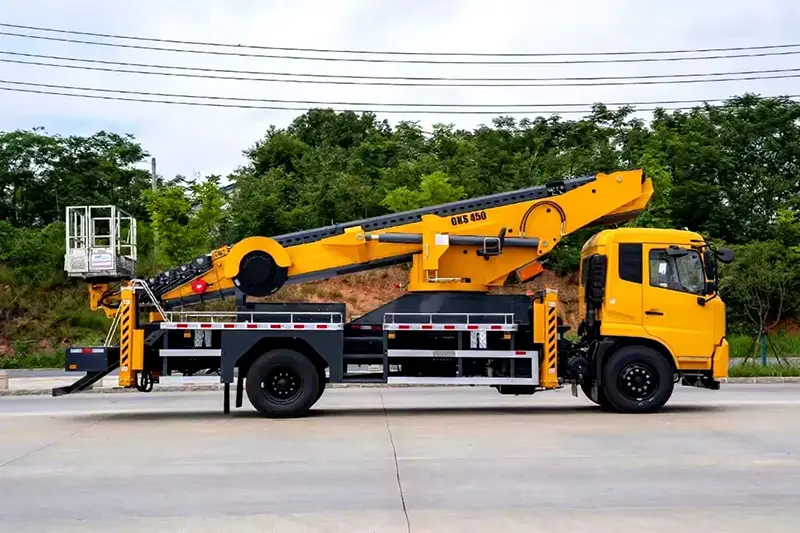 Il adopte une conception à double vérin de levage, qui minimise efficacement le balancement de la flèche pendant le levage et le fonctionnement, gardant la plate-forme stable et sans secousses même à une hauteur maximale de 45 m, garantissant ainsi la sécurité de l'opérateur et la précision des opérations. Le plateau tournant prend en charge **une rotation continue à 360°** avec deux réducteurs, offrant une rotation stable et efficace sans blocage, réalisant un fonctionnement complet et éliminant les angles morts. L'ensemble du mécanisme de levage fonctionne sans problème, avec une réponse rapide et une forte capacité de charge, répondant pleinement aux besoins d'opérations intensives et de longue durée à haute altitude.