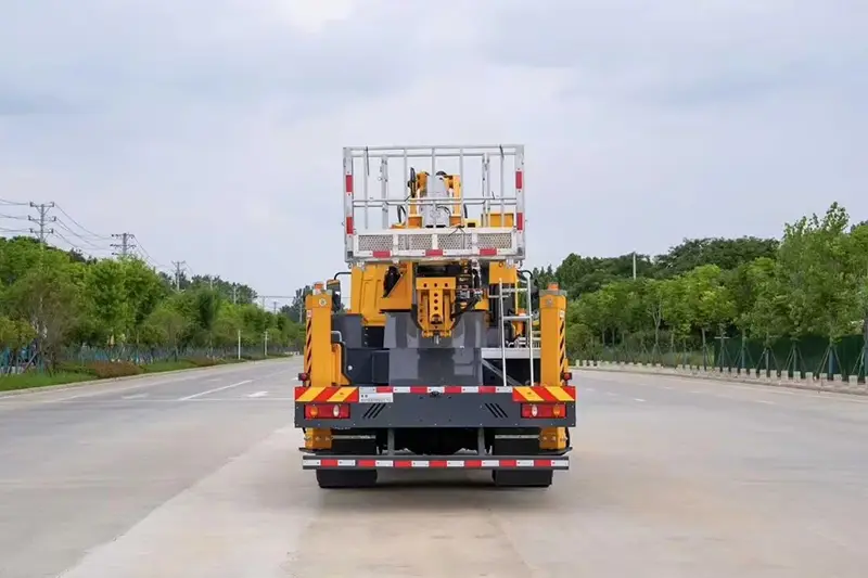 Ce camion à plate-forme de travail élévateur aérien de 45 m est équipé de fonctionnalités de sécurité complètes pour garantir une protection complète : système de mise à niveau automatique de la plate-forme, dispositif de verrouillage supérieur et inférieur du véhicule, système d'alarme de limite, pompe hydraulique d'urgence et fonction de descente à une touche, évitant efficacement les accidents opérationnels et les pannes d'équipement. Les deux systèmes de contrôle électronique prennent en charge le fonctionnement à distance du plateau tournant, s'adaptant aux environnements difficiles et éliminant les angles morts de fonctionnement. La cabine de 1 900 mm de large est équipée de la climatisation, de vitres électriques et d'autres configurations de confort, réduisant ainsi la fatigue de l'opérateur lors de travaux de longue durée. Des configurations supplémentaires incluent un enrouleur de câble inverseur et un radiateur d'huile hydraulique, élargissant les scénarios d'application du véhicule et garantissant un fonctionnement stable du système hydraulique sous une charge à long terme.