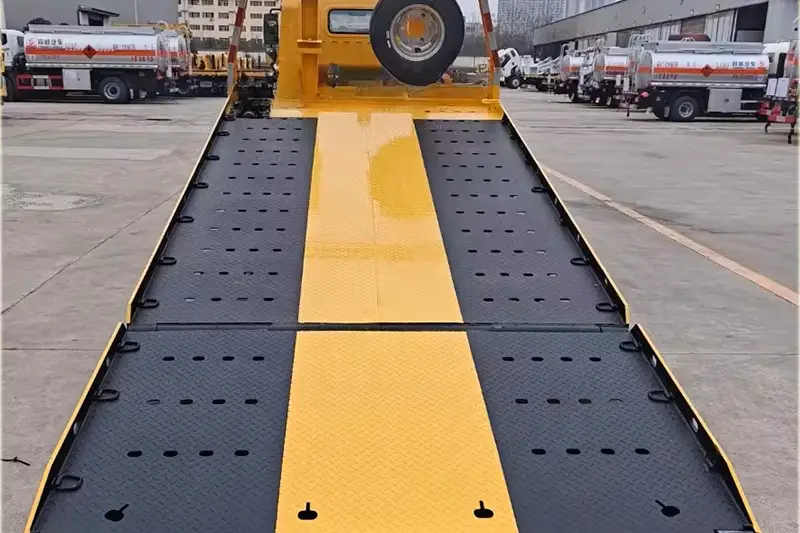 Un plateau à plat à haute efficacité One Tow Two : adopte une conception professionnelle à plat à un remorquage et à deux, dimension globale 5 600 × 2 400 mm, composée d'une plaque à carreaux pressée à formation unique de 4 mm, antidérapante et porteuse. Il peut transporter un véhicule défectueux de 4 tonnes sur le plateau et en remorquer un autre à l'arrière, améliorant considérablement l'efficacité du sauvetage et du transport, s'adaptant à divers scénarios de sauvetage urbain et routier.